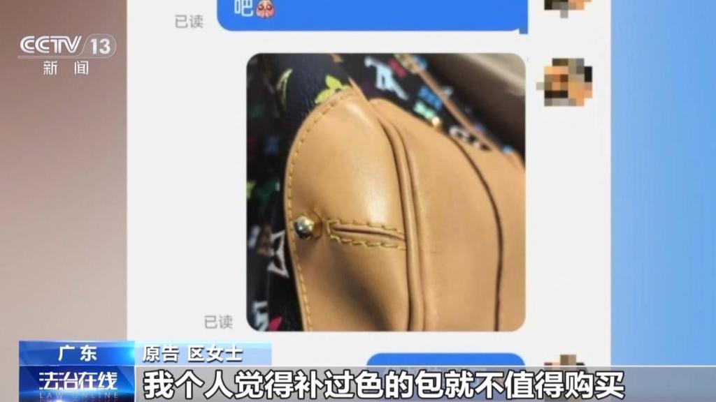 很快,区女士收到了包,但她仔细检查商品之后发现,这款包背带处的部分区域,颜色与其他地方不同,她判断这只包很可能经过补色处理。