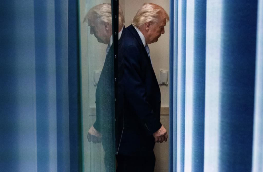 ▲周一,特朗普在白宫新闻发布会上发表讲话。(图源:纽约 · 时报)