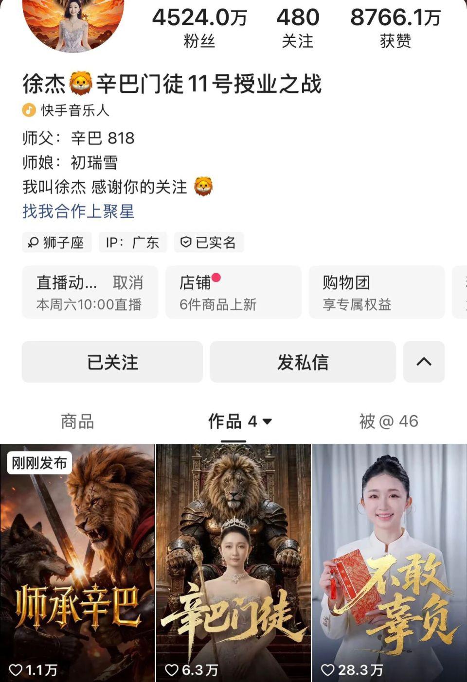 徐杰的账号有 4500 万粉丝,辛巴有意将其托举成另一个破亿粉丝顶流主播。