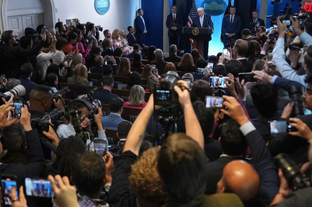 △当地时间 4 月 6 日,美国总统特朗普在白宫举行新闻发布会