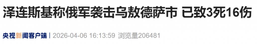 乌克兰总统泽连斯基 6 日在其官方社交平台通报,俄军当天凌晨对乌克兰发动了大规模无人机袭击,重点袭击了敖德萨市的民用基础设施,截至目前已造成 3 人死亡、16 人受伤。