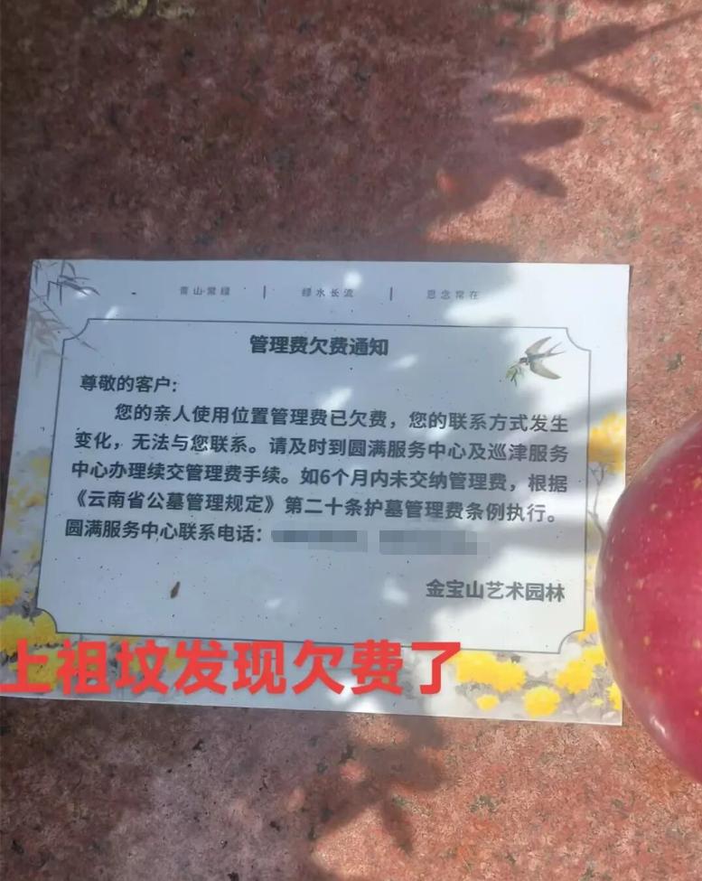 网友称扫墓时发现墓碑被贴欠费通知单,当地管理方回应