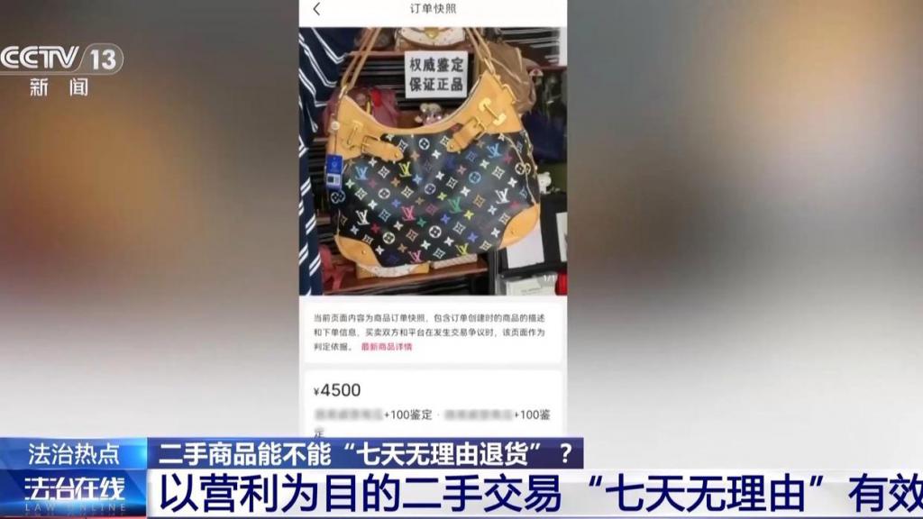 广州互联网法院法官 麦应华:比如生鲜、报纸杂志等,就是对期限要求比较高的物品,以及一些音像影音物品。案涉二手商品本身不属于生鲜类的或者对日期要求很高的商品,我们认为本案中的二手包来说,它本身不属于不适宜退换货、退换货会对商品的价值造成重大贬损的商品。