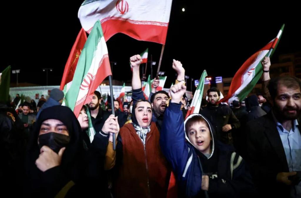 ▲ 4 月 8 日,在伊朗德黑兰,为期两周的伊朗战争停火协议宣布后,人们聚集在一起挥舞旗帜。(图源:路 · 透社)