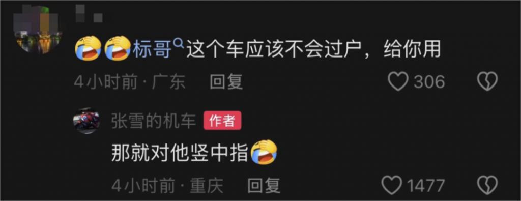 因为网友还觉得这车不会过户,意思是陈光标蹭张雪热度,张雪跟着评论区吐槽了一番。