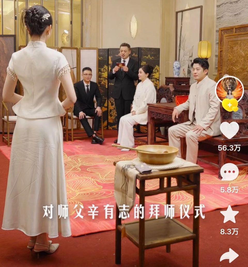 拜师仪式十分正式。徐杰行跪拜礼、敬献束修六礼(传统拜师礼道具)、诵读拜师帖,宣誓 " 立身正直、传承事业 ";辛巴赠 " 心、根、路 " 三字箴言。