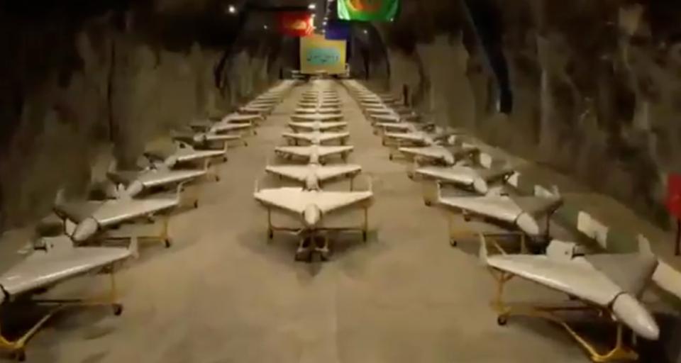 ▲伊朗 " 地下堡垒 " 内存放的无人机