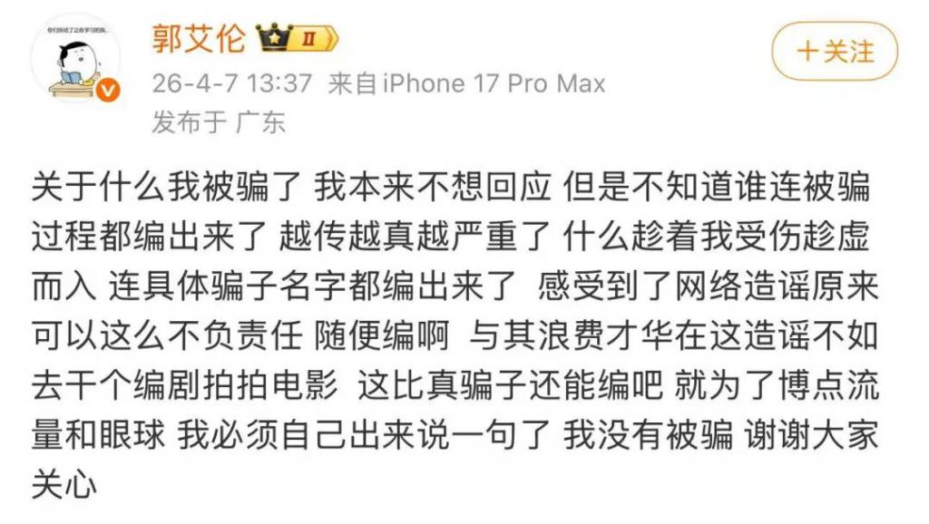 郭艾伦:我没有被骗,谢谢大家关心
