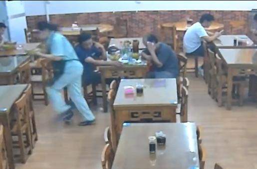 4 月 4 日,广东中山一家面馆内,一名醉酒男子多次伸腿去绊经过的人。一名服务员被绊后险些摔倒,手上的面条洒了一地,面汤溅到其他顾客身上。