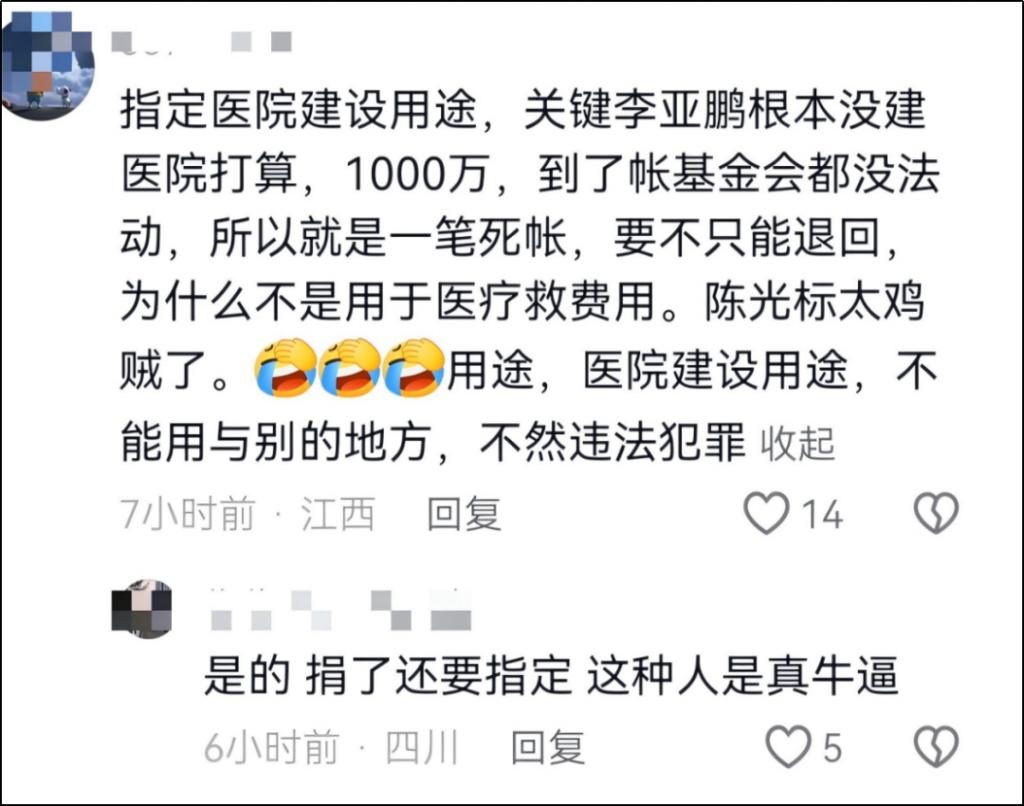 手续费上,网友觉得捐 10 万可能的手续费可能都不止 15 元,你还捐这么多,又欺负我没见过世面。
