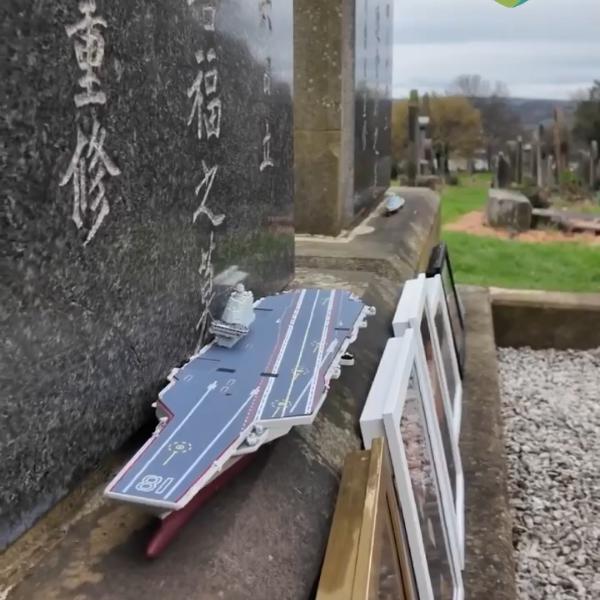 英国北洋水师水兵墓前,摆满中国航母照片……